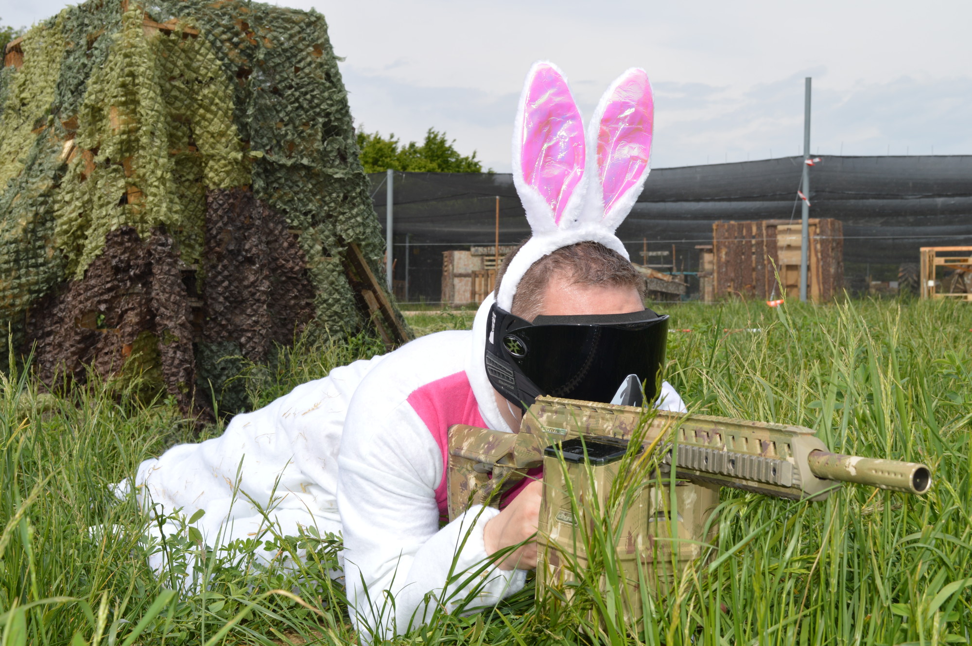 In unserem 20 ha großen Adventurepark ist Spaß und Action garantiert! Spielt Paintball, Lasergame oder Bubble Soccer in verschiedensten Modi gegeneinander, duelliert euch im Axt- & Messerwerfen sowie Fußball Billard oder krönt in unserem brandneuen Adventure Duell Parcour die talentiertesten Spieler:innen unter euch. Solltet ihr euch für Paintball oder Lasergame entscheiden, wartet mit der legendären Hasenjagd noch ein weiteres Highlight auf euch! Wir stecken den Junggesellen gratis in ein extra Kostüm und ihr versteckt ein Bund Möhren auf dem Lasergame oder Paintball Spielfeld. Wie dann euer Hase zu seinen Möhren kommt, liegt ganz an euch.